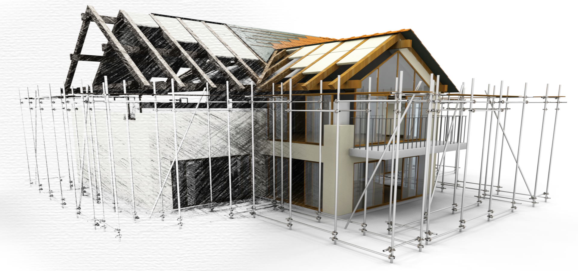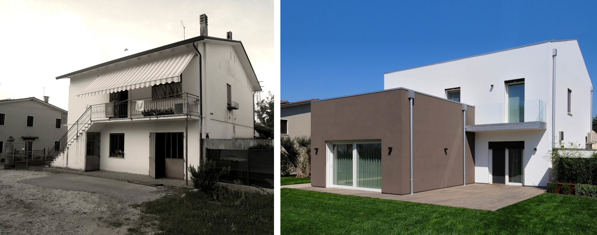 Ristrutturazione facciata villa con ampliamento strutturale.